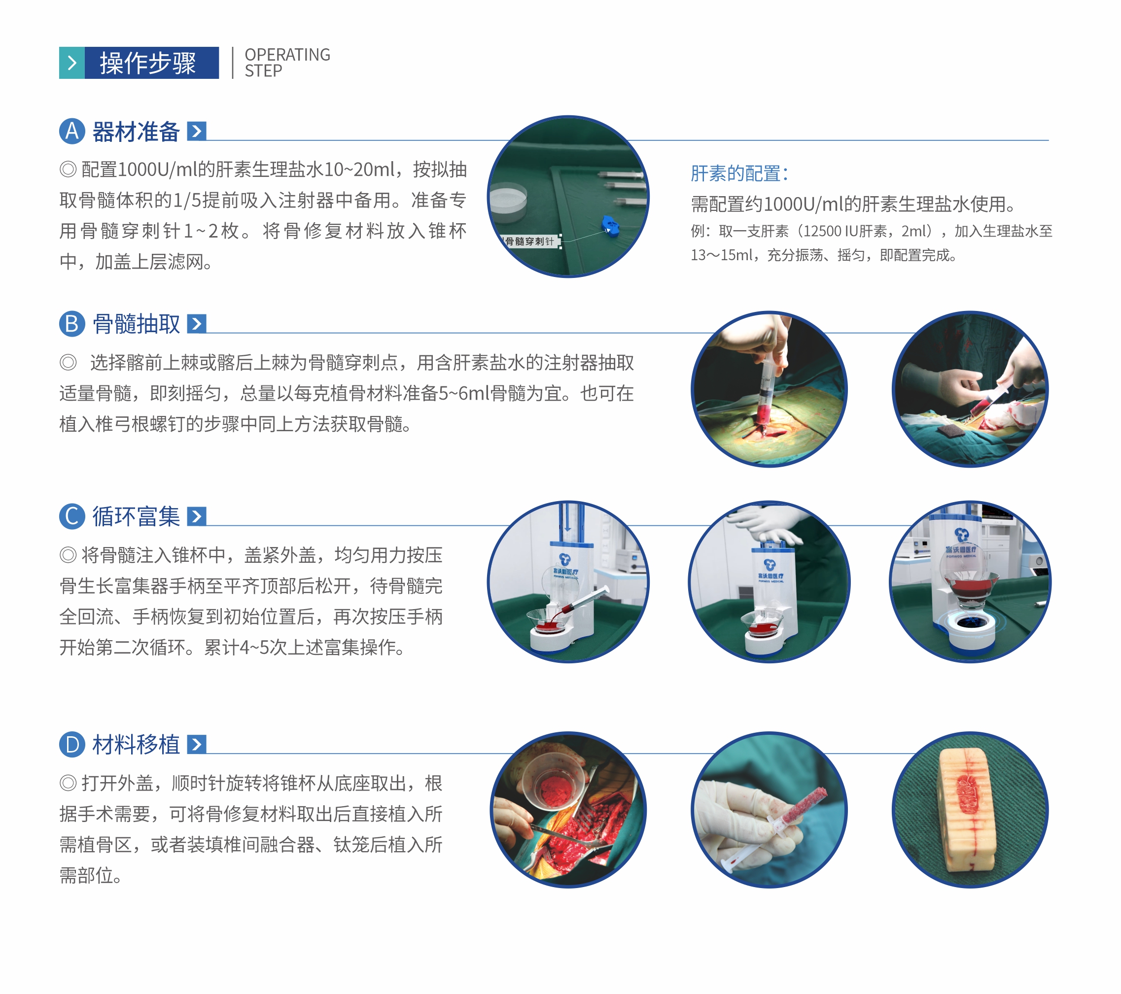 適應(yīng)癥:適用于植骨手術(shù)中快速將骨髓的干細(xì)胞及骨生長因子等有效成分富集到骨修復(fù)材料中一次性使用。