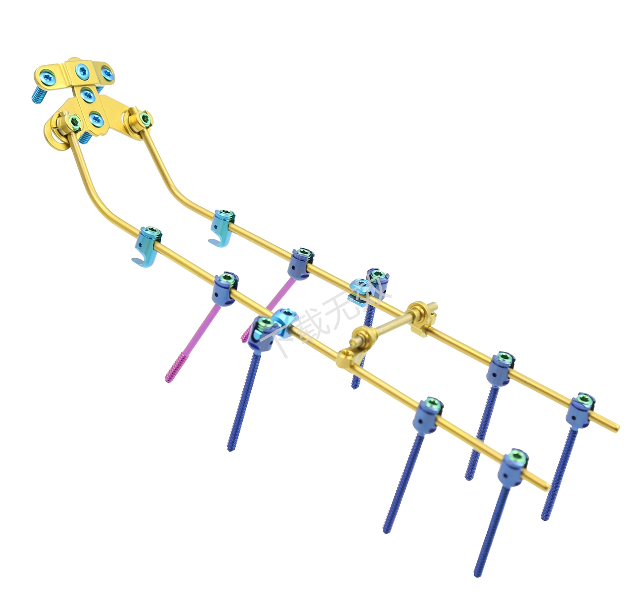 胸腰椎釘棒內固定系統由椎弓根釘、長尾椎弓根釘、短尾椎弓根釘、微創萬向椎弓根釘、棒、橫連裝置、 鎖緊螺帽、固定塊和金屬鉤等組成。適用于脊柱胸腰椎骨折、滑脫、退行性變、畸形、椎間盤突出、椎管狹窄等內固定。