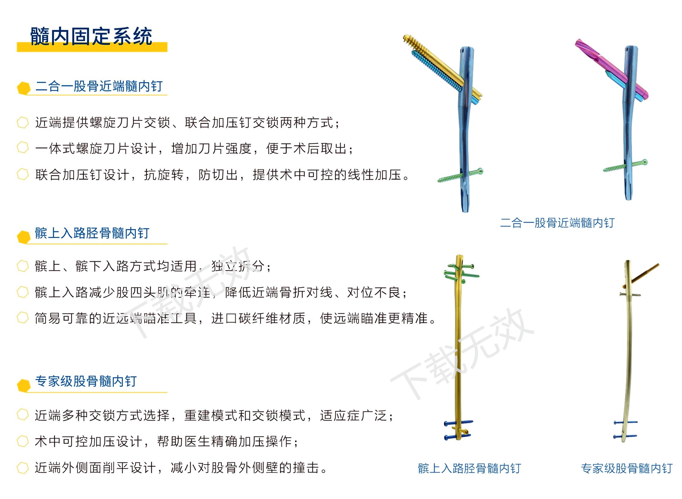 適用于股骨干骨折、股骨近端和干骺端骨折、脛骨干骨折、肱骨干骨折等內固定。